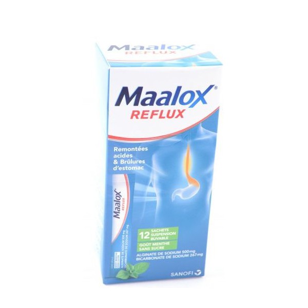 MAALOX REFLUX, menthe sans sucre, 12 sachets buvables